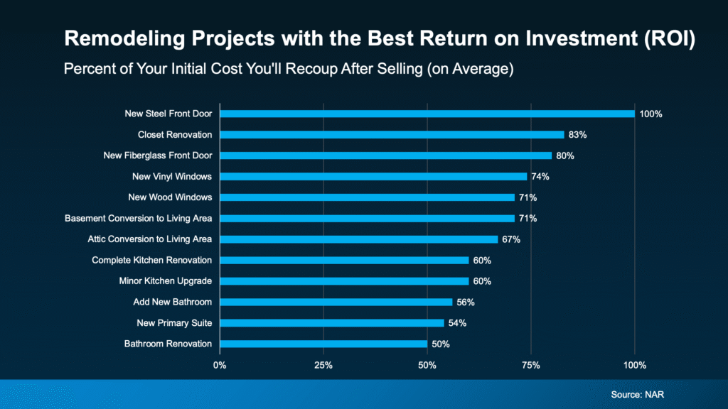 As you can see, there’s a wide range of projects on that list. Yes, some are bigger-ticket items, like kitchens or baths. But others are smaller updates with surprisingly strong ROI.